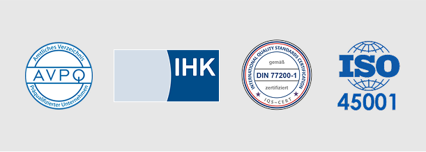 ● Dienstleistungsausübung angelehnt an DIN ISO EN 77200 Standard für Sicherheitsdienstleister