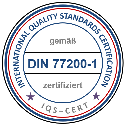 Um qualitativ immer besser zu werden, implementieren wir gem. DIN zu Qualitätsmanagementsystemen nach der Norm DIN EN ISO 9001:2015. Das System dient unserem Unternehmen, unsere Leistung nachhaltig zu verbessern und unsere Prozesse zu optimieren und die Qualität nachhaltig zu sichern. Dies kann nur in Verbindung einer Zertifizierung durch die Zertifizierungsstelle ZertPunkt GmbH wiederkehrend geprüft werden.